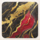 Red Black Marble Pattern with Gold Square Paper Coaster