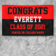 Hang this Red & Black Minimalist Graduation Party Banner to honor your graduate. Personalize with your grad's name, school, and class year. This bold school colors banner features a classic font and plenty of school spirit.