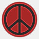The traditional, iconic Peace Symbol, in black trimmed with red. The symbol is sometimes known as the Peace Sign.