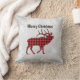 Red & Black Plaid Bull Elk Christmas Throw Pillow