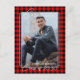 Unique and trendy congratulations graduate announcement and celebration party invitation card, with a simple classic rustic red and black colored buffalo lumberjack plaid tartan pattern background. With room to customize or personalize with a photo, the name of the graduate, class graduation year, high school, future college or university name, and celebration party event information. Let the family, friends and neighbors know there is a happy graduate ready to conquer the world, and invite everybody to come celebrate the happy event with you!