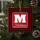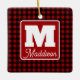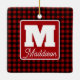 Red & Black Plaid Monogram Name Christmas Ceramic Ornament