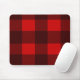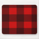 A mousepad featuring a flannel inspired design of red and black plaid.