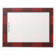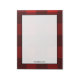 A notepad featuring a sheer center section over a flannel inspired red and black plaid background. Personalize with your name in black.