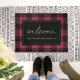 Add a farmhouse style touch to your entryway with this rustic buffalo plaid patterned doormat in classic cranberry red and black. "Welcome" appears in the center in casual handwritten script lettering; personalize with your family name beneath.