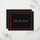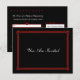 This black and red wedding response postcard has a vintage, old fashioned feel with old-timey letter design, including elaborate script elements, a decorative banner, stars and a swirly ampersand. The fancy invitation is inspired by both vintage design and stylish posters. The text reads: "Répondez S'il Vous Plaît" on the front and "The Favor of a Reply is Requested by" followed by your personal text on the back.
