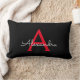Red Black Script Girly Monogram Name Lumbar Pillow