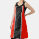 Red, black, silver and white stripe apron
