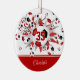 This cool girl's soccer ornament features an "explosion" of varied size soccer balls that have red, black and white panels, and gray and red star shapes, upon which you can personalize her jersey number - the red star has a tiny pattern of white polka dots - customize the athlete's name on the front & commemorative year on the back on a red color strip at the bottom edge of the ornament - katz_d_zynes