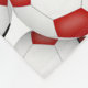 This team colors soccer themed fleece blanket features a pattern of varied size soccer balls turned every which way on a customizable white background - some of the soccer balls' typically black panels have been recolored red - customize with soccer player's name and monogram or jersey number - by katz_d_zynes