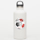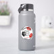 This team colors soccer sticker for boys or girls features the realistic image of a soccer ball that has red, black and white panels - customize the player's name, jersey number, team name and mascot name - by katz_d_zynes