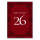 Red & Black Swirl Gothic Wedding Table Number