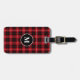 Red Black Tartan Plaid Monogram Luggage Tag