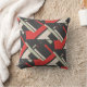 Red Black Taupe Beige Tiled Diagonal Abstract Art Throw Pillow