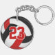 This red and black boys' volleyball double sided acrylic keychain features a customizable player name, court position, team name and school / club year on the front and player jersey number on the back - by katz_d_zynes