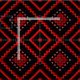 Add a touch of bold, rustic charm to your next DIY project with this striking geometric design. This pattern features a traditional tribal motif with stepped diamond shapes, reminiscent of classic Kilim or Aztec weavings. The palette combines a deep black background with vibrant red outlines and muted pink accents, creating a high-contrast look perfect for modern bohemian or Southwestern home decor. This print is an excellent choice for reupholstering dining chairs, creating statement throw pillows, sewing unique tote bags, or quilting projects that require a touch of ethnic flair.