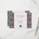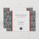 Black and white with red accents, this elegant damask wedding reply or rsvp card has a vintage feel. Great for a vintage style wedding using a black, white, and red wedding color theme. The text is easy to customize. Just change it using the personalize option. To change the font, font size, font color, and/or text placement, you can do that using the customize it option. This reply could be used for a variety of special occasions, such as anniversary, retirement, or special birthday. You can change the text and use it as an invitation in itself or you can use it as a direction, reception, and/or accommodation card. The lines can also be removed using customize it.
