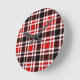 Red Black White Flannel Tartan Pattern Design Round Clock