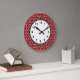 Red Black White Moroccan Quatrefoil Pattern #5DS Large Clock
