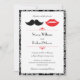 Red, Black & White Mustache & Lips Damask Wedding Invitation