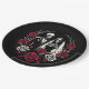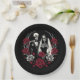 Red & Black White Roses Skeleton Couple Wedding Paper Plates