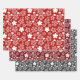 Red, Black & White Star & Snowflake Pattern Wrapping Paper Sheets