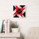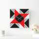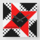 This updated quilt block features a black center block with white numbers to mark each quarter hour. The numbers can be removed or changed to a different font or color. Black and white polka dots and black, white and red triangles make up the pinwheel design of the quilt block. This design is only suitable for the square clocks.
