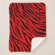 This sherpa blanket displays a red & black zebra stripes skin print over the front panel with a delicate and soft feel perfect for picnics, outdoor events, and cozy winter snuggles. All blankets are made from 100% polyester printed mink with edge-to-edge sublimation printing and sturdy double edge stitching has soft Sherpa on the back with an off-white color.