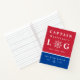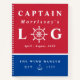 Captain's log in red and blue with a ship's wheel replacing the O in Log, and a white anchor. Add your name, the ship's name, and the date.