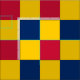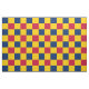 Fabric with seamless red, blue and yellow checkered pattern in colours of flag of Chad