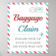 "Baggage Claim" sign that can be used for a travel/airplane themed baby shower, sprinkle, birthday or another occasion. This design will look best in 8" x 10" or 16" x 20". If you're looking for another size, please contact us to have it fitted correctly.