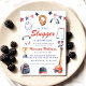 Celebrate the upcoming arrival of your little slugger with this adorable baseball-themed baby shower invitation. The design features charming watercolor illustrations of baby baseball attire, a baseball glove, bat, trophy, and a festive star banner in red, white, and blue. It's the perfect way to invite guests to honor the mom-to-be with a sporty and fun theme. This invitation sets a playful tone for a memorable baby shower celebration, ensuring your guests are excited to join the festivities.