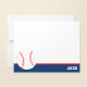 Modern baseball flat note cards. Classic navy blue and red color combination make this a traditional choice. Makes a great thank you note for a Bar Mitzvah or birthday party.
