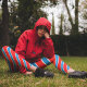 Red Blue Diagonal Stripes Leggings