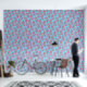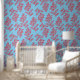 Red Blue Flower Botanical Floral Line Art Pattern Wallpaper.