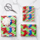Red, Blue, Green Christmas Stockings & Stripes Wrapping Paper Sheets