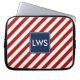 Red Blue Nautical Stripes Monogram Laptop Sleeve
