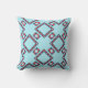 Red Blue on Light Aqua Diamond Mediterranean Tiles Throw Pillow