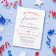 Elegant red, white, and blue retirement party invite with Out of office forever, a clean typography design, and red and blue fonts against a white background. Celebrate leaving the office forever and enjoying your retirement and send this red, white, and blue, elegant retirement party invitation to your friends and family and colleagues. Commemorate your extraordinary career with an invitation that exudes timeless elegance in patriotic colors. This stunning red, white, and blue design is the perfect choice for a retirement party. The absence of a photo and customizable text allow you to personalize the invitation with your own words, suited for any profession and gender.