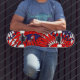 This is a really striking red and blue retro design pattern which looks awesome on this fantastic skateboard.