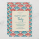 Red and blue shell/fan pattern Empty Nest party invitation. Contact us for help with customization or to request matching products.