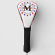This golf driver cover features your monogram in black within a circle framed with black dots and double black lines. On the outside of the black frame is a circle of alternating red and blue stars. Your name is written in red over the center monogram. Classy!