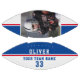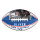 Red Blue Stripe Player Name Number Team Photo Football. Red, blue and white color scheme. Add your photo, name, team name and player number. You can change any text on the football or erase it. A perfect gift for a football player, teammates, coach. Great keepsake to remember the favorite sport.