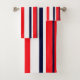 Funky Red, White, Blue Lines Bath Towel Set / Towel to add to your home bathroom décor collection. A cool present / gift idea for all who love custom design unique items, positive vibes, busy prints etc. American, French etc.