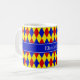 Red Blue Yellow Harlequin Royal Ribbon Monogram Coffee Mug