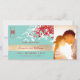 Oriental zen red, white and aqua turquoise blue bamboo leaves with a double happiness symbol. An elegant and stylish asian themed wedding photo save the date announcement design which is modern, simple and classy.