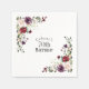 Part of a coordinating set of birthday party products celebrating an 70th birthday, honor someone special with this lovely watercolor floral birthday party napkin. Embellished with lovely boho floral corner bouquets in the stylish color combination of burgundy red, blush pink, plum purple, and peach with sumptuous greenery scattered throughout, it makes a wonderful choice for celebrations from mid-summer, to fall and throughout the winter months. Personalize the text template with the guest of honor's name. All of the text can be edited, so you can use this item for birthdays at any age! These napkins are available in 3 sizes: shown here in cocktail size, they also come in luncheon or dinner sizes.