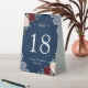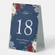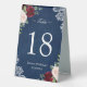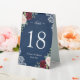 Red Blush Floral Navy Blue Wedding Table Number Tent