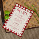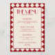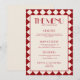 Make a bold statement at your wedding reception with this striking red and cream menu card featuring a retro checkerboard design. With a perfect balance of vintage flair and modern fun, this funky wedding dinner insert sets the tone for a vibrant and unforgettable celebration.