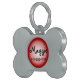 Adorable custom id dog tag in silver metal bone shape is easily personalized with your dog's name and your phone number. This design comes in an array of colors, so you can find one to match every collar your dog has.